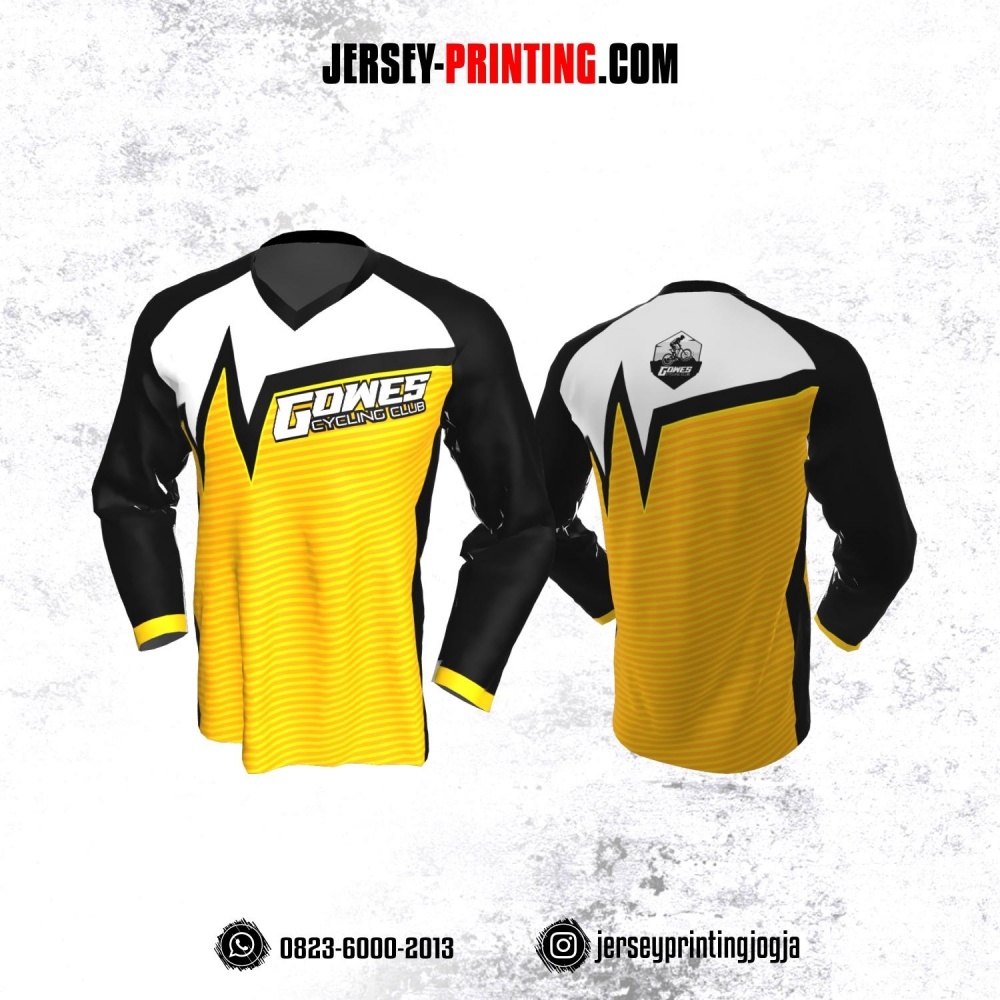 Jersey Gowes Sepeda Kuning Hitam Putih Orange Strip Lengan Panjang