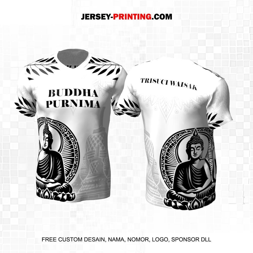 Jersey Hari Raya Waisak Buddha Putih Hitam Abu Motif Batik Siluet Patung Arca 05