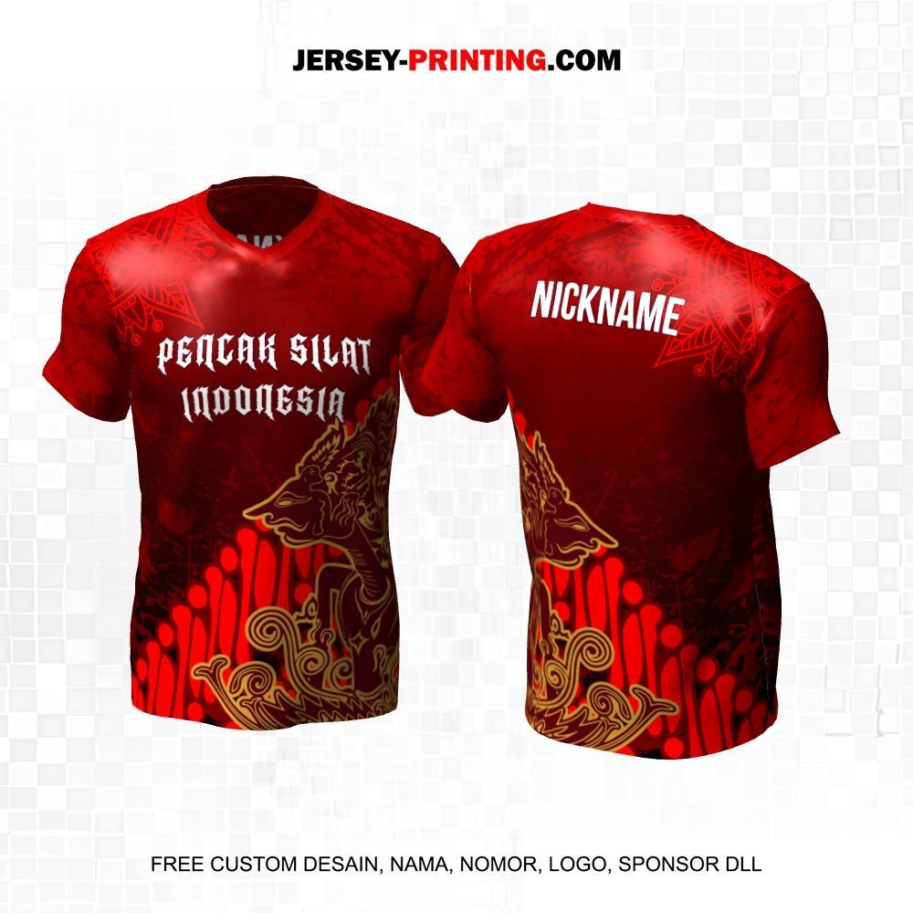 Jersey Pencak Silat Merah Maroon Motif Abstrak Wayang Batik Parang 595