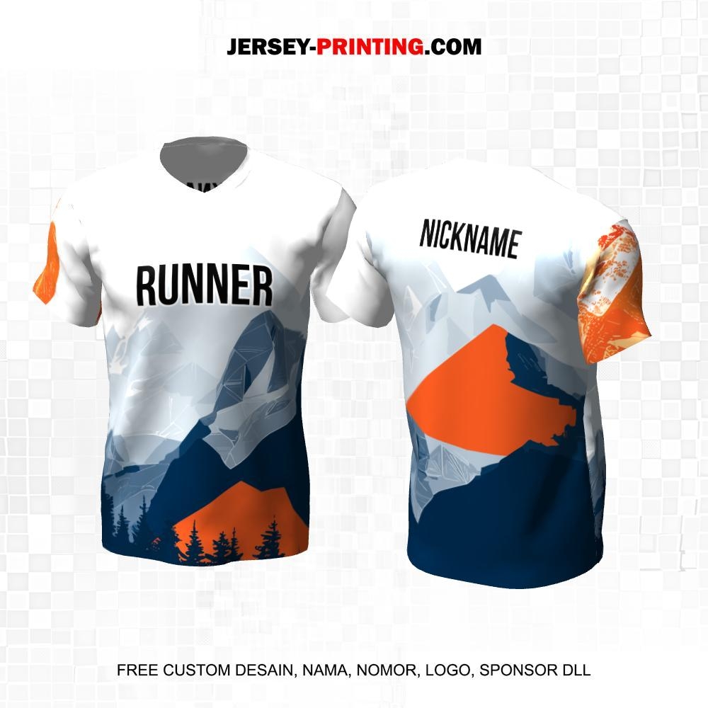 Jersey Lari Putih Biru Orange Motif Abstrak Pegunungan 651