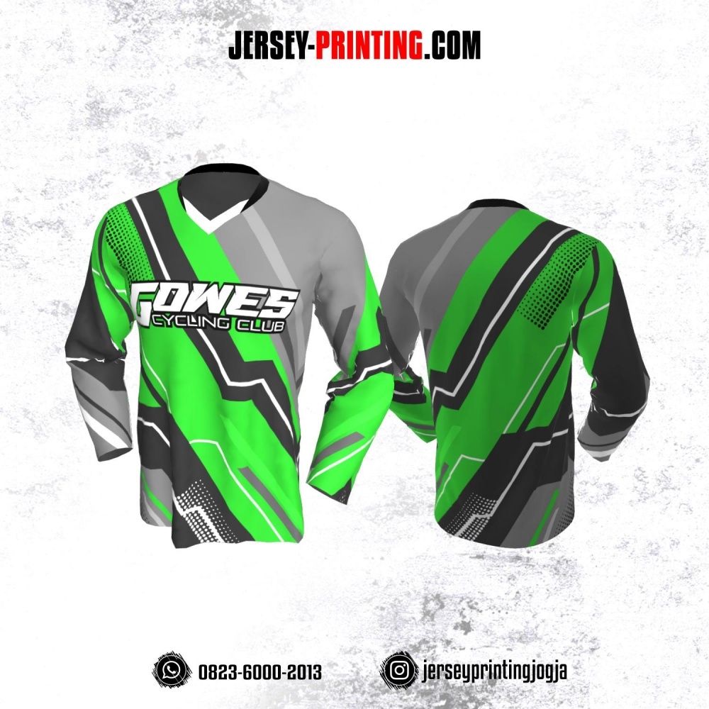 Jersey Gowes Sepeda Hijau Abu Putih Lengan Panjang