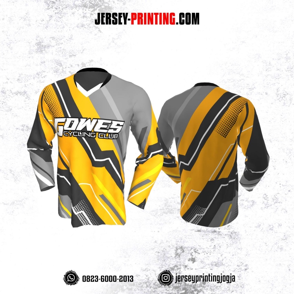Jersey Gowes Sepeda Kuning Abu Putih Lengan Panjang