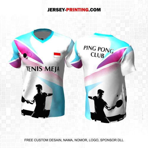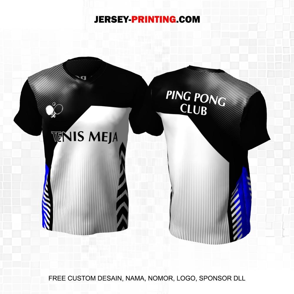Jersey Pingpong Tenis Meja Hitam Putih Biru Motif Garis 08