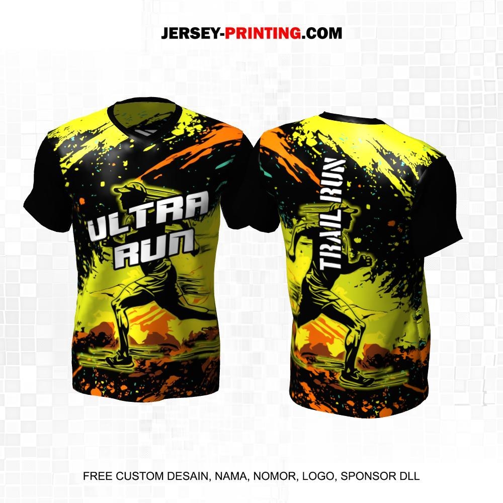 Jersey Trail Run Lintas Alam Cross Country Hitam Hijau Orange Motif Abstrak 03