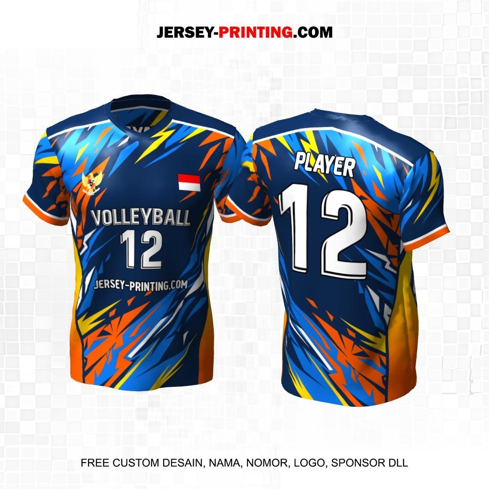 Jersey Volly Biru Kuning Orange Motif Abstrak 488