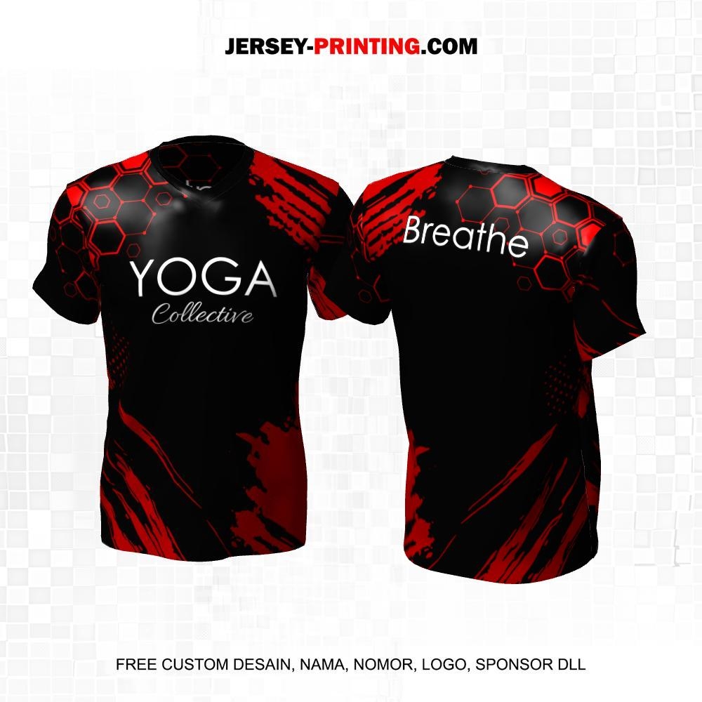 Jersey Olahraga Yoga Hitam Maroon Motif Abstrak Honeycomb 10