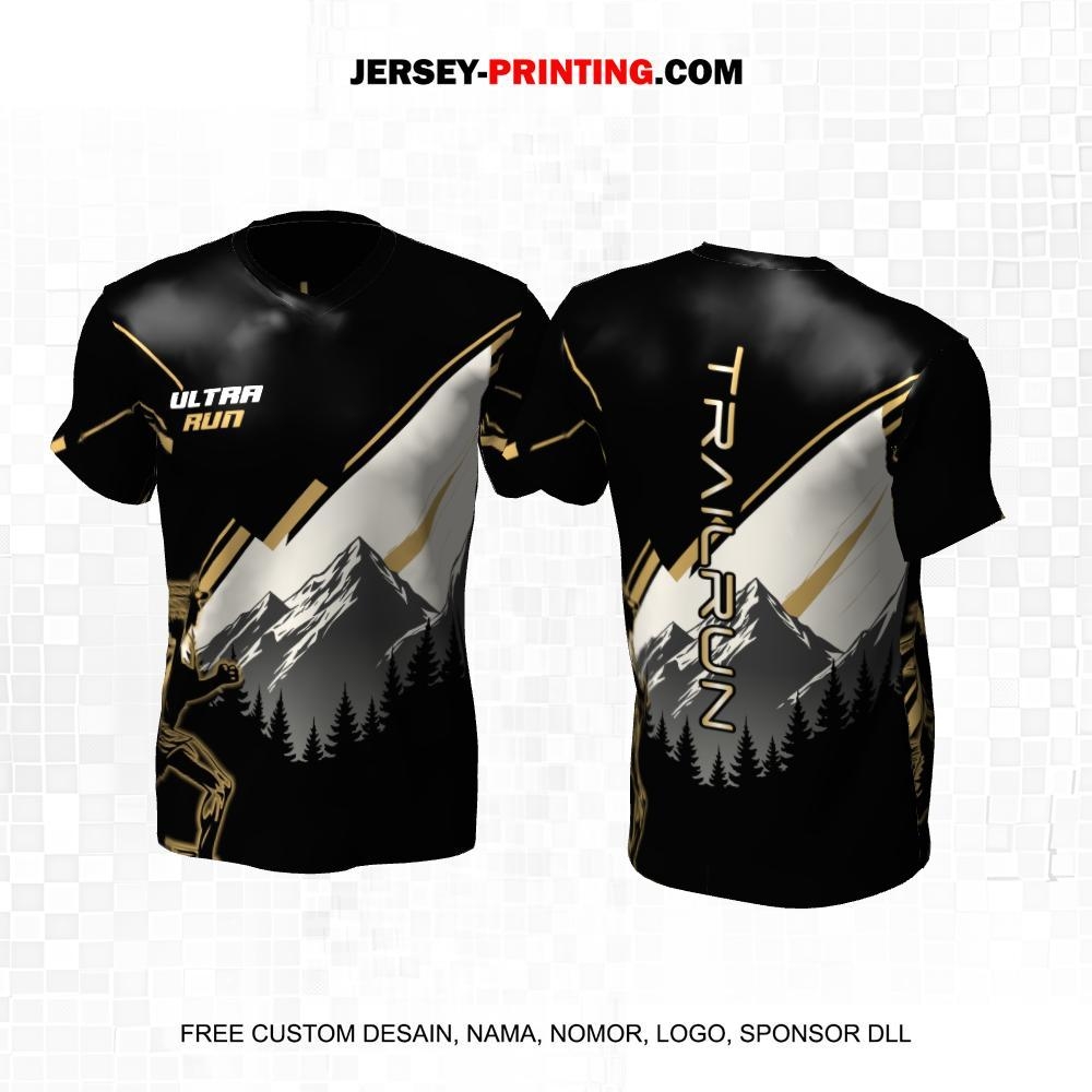 Jersey Trail Run Lintas Alam Cross Country Hitam Krem Abu Gold Motif Pegunungan 16