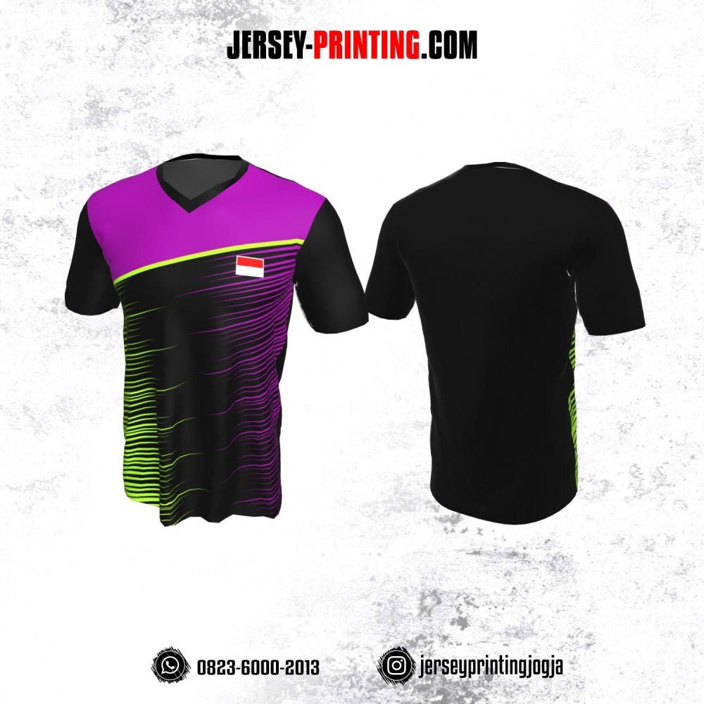 Jersey Badminton Hitam Corak Ungu Hijau