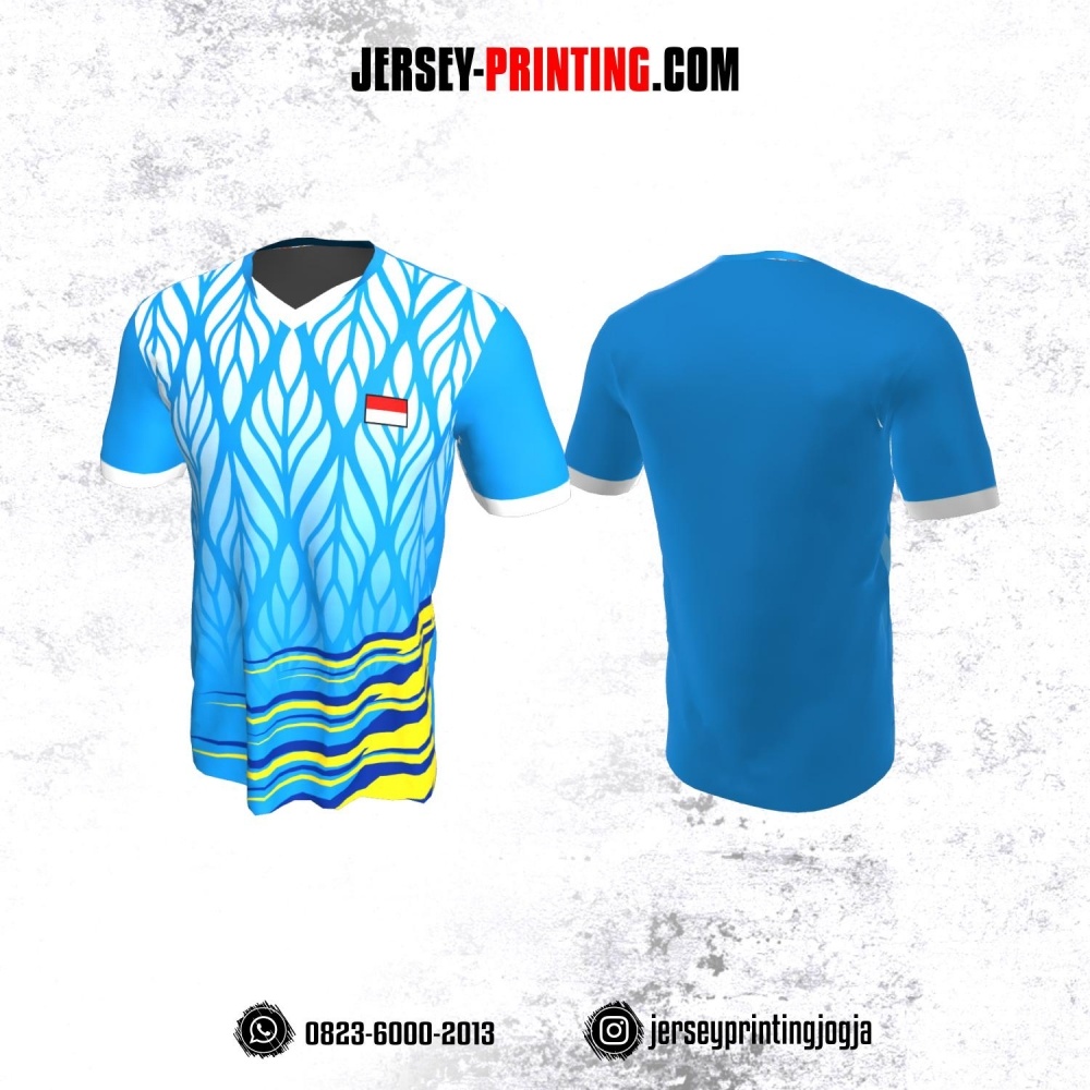 Jersey Badminton Biru Motif Daun Biru Kuning