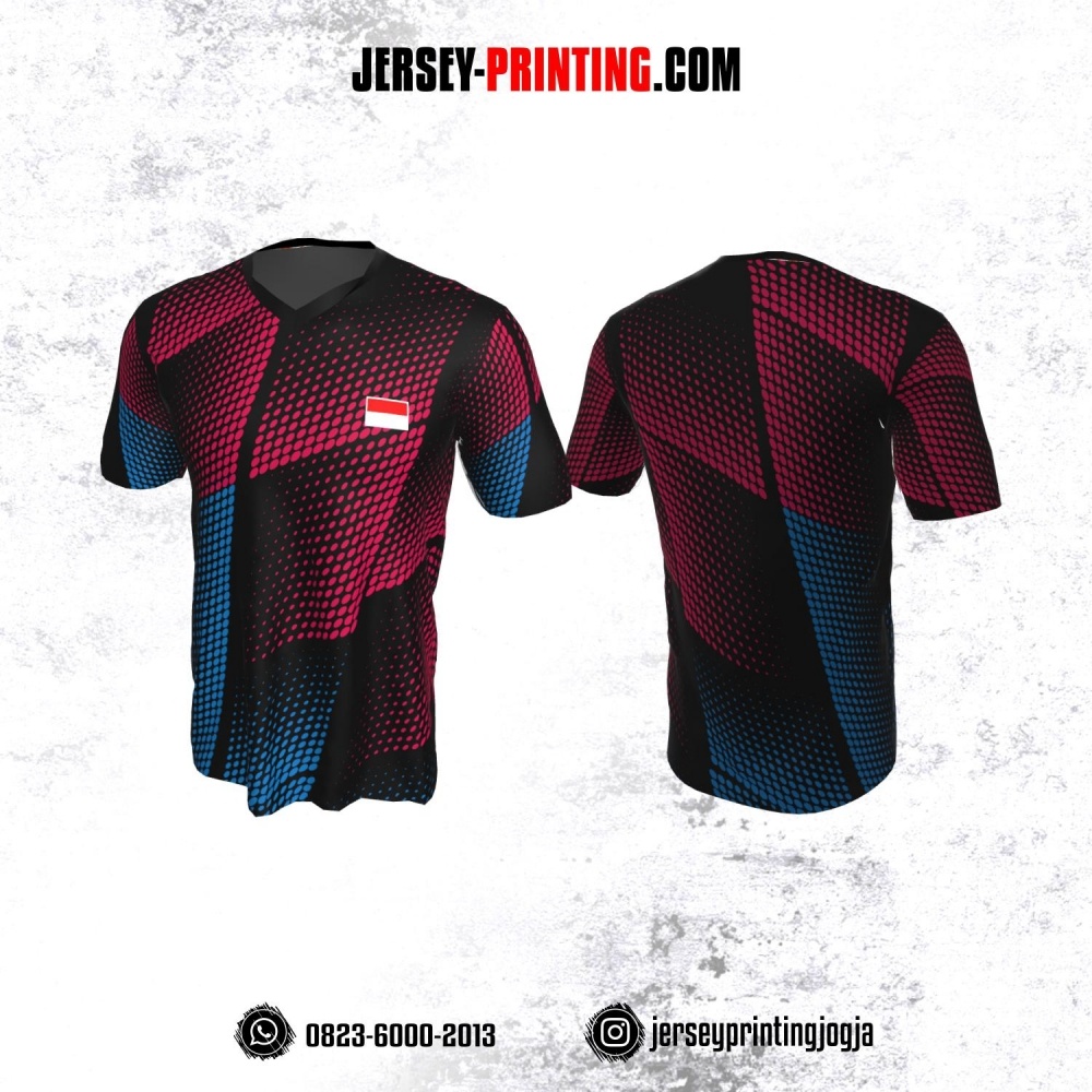 Jersey Badminton Hitam Corak Biru merah Polkadot