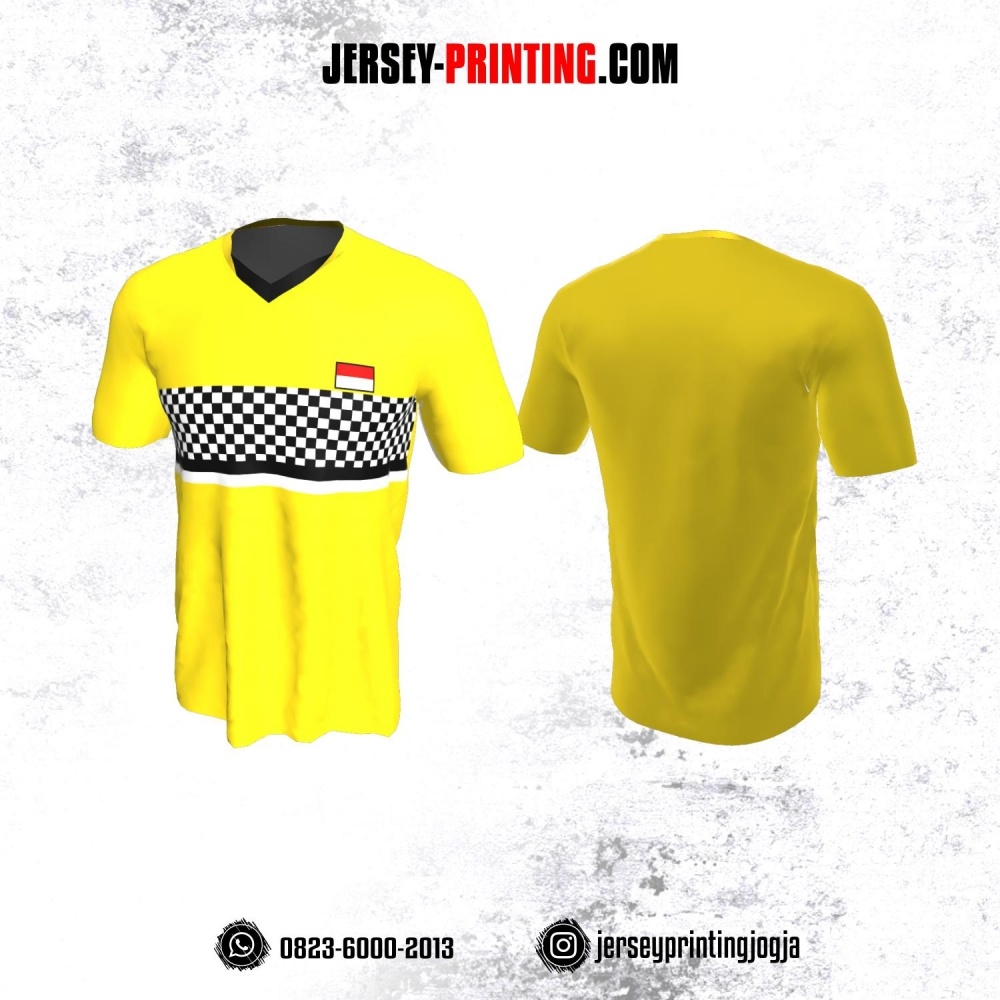 Jersey Badminton Kuning Motif Papan Catur Hitam Putih