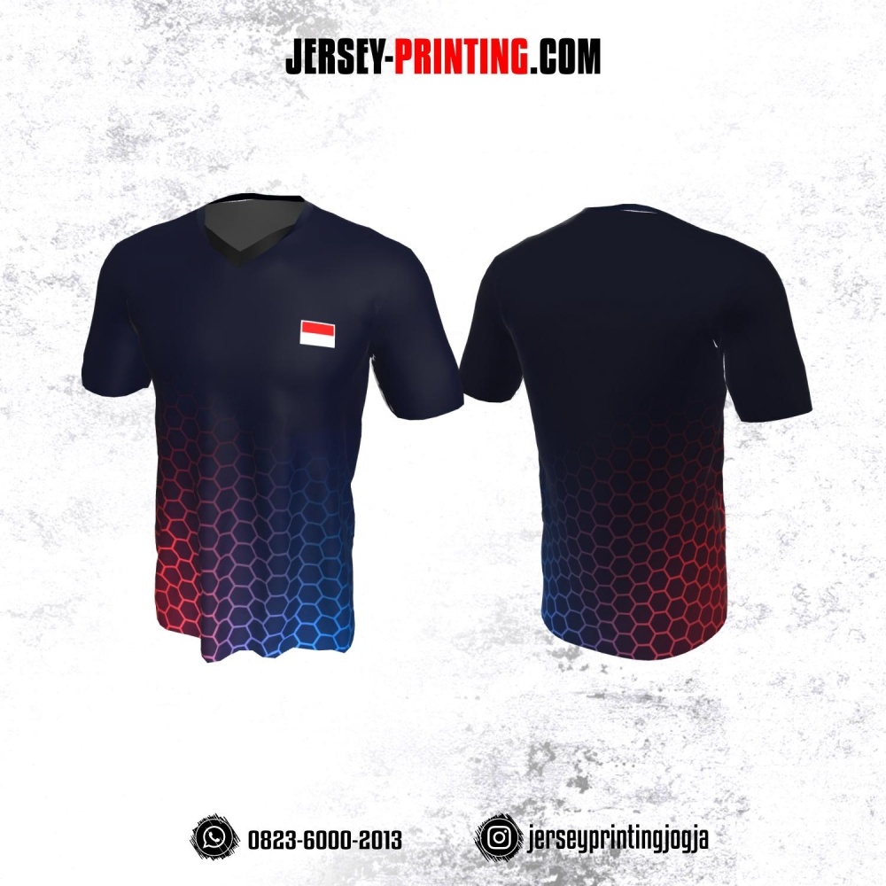 Jersey Badminton Dongker Corak Biru Merah Honeycomb
