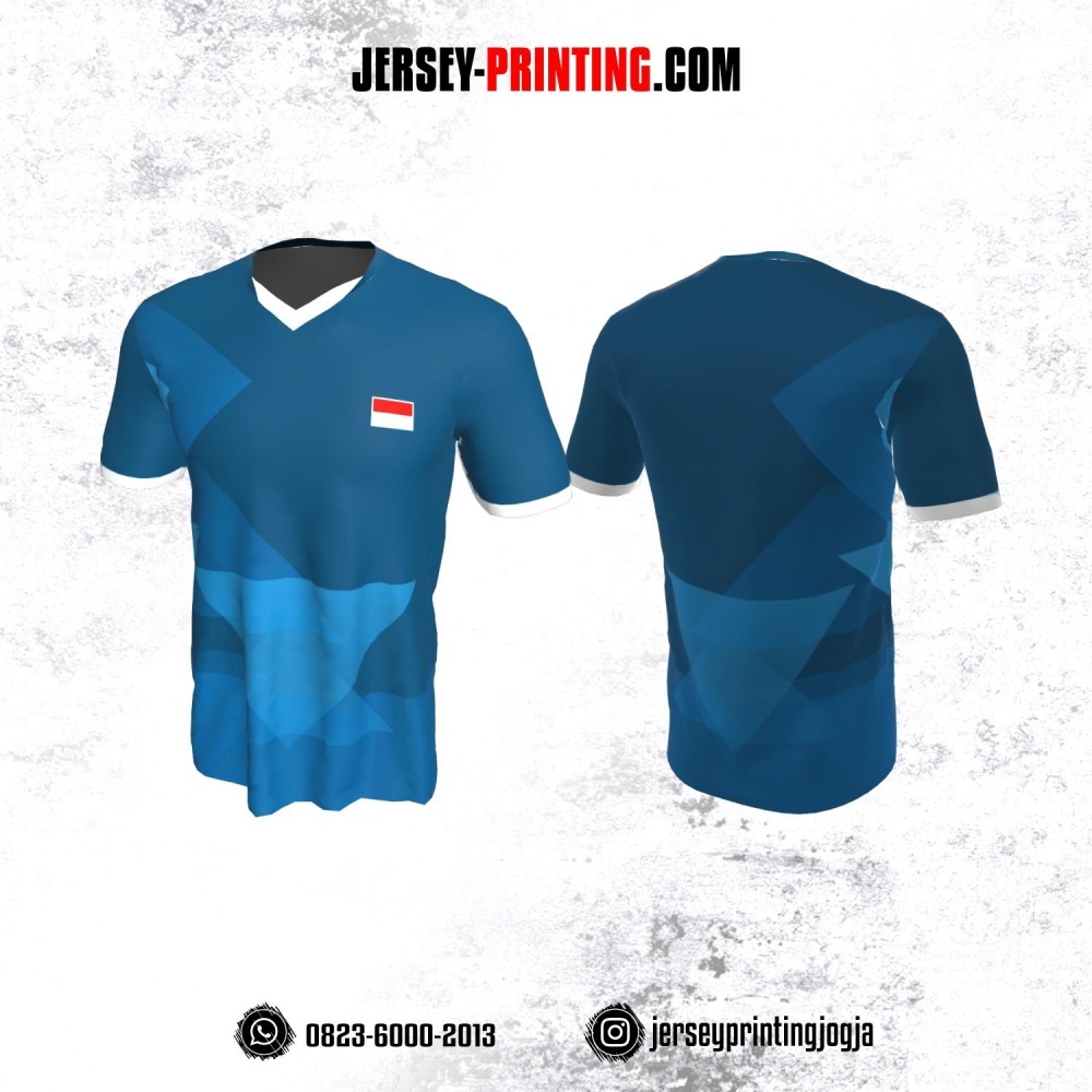 Jersey Badminton Biru Corak Geometris