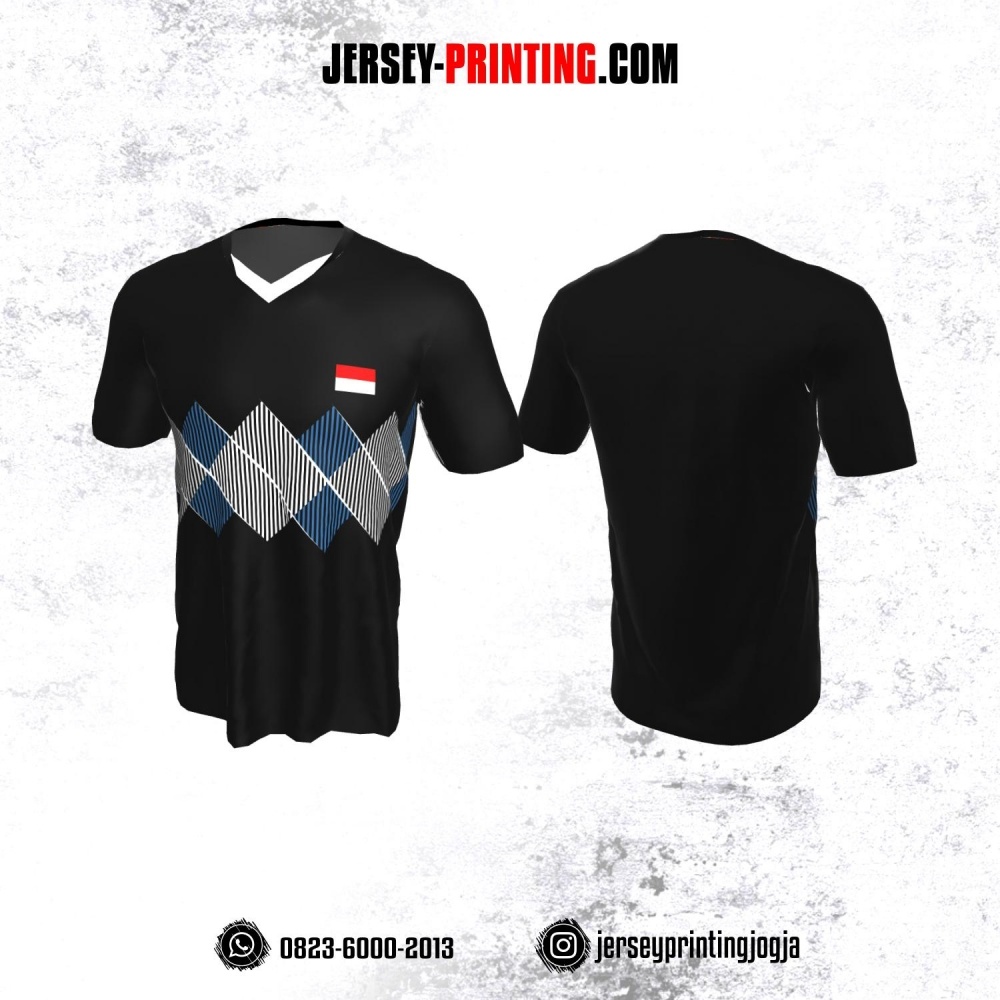 Jersey Badminton Hitam Corak Biru Putih Strip