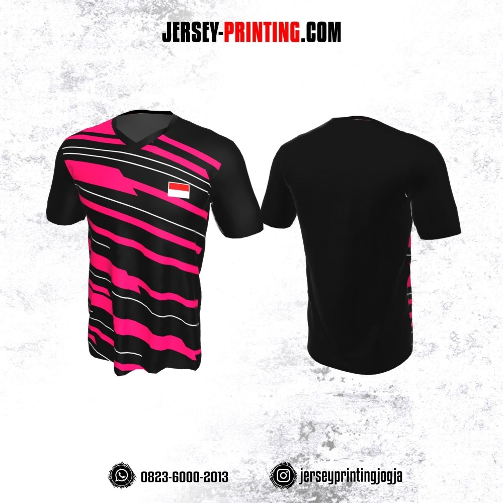 Jersey Badminton Hitam Garis Pink Putih