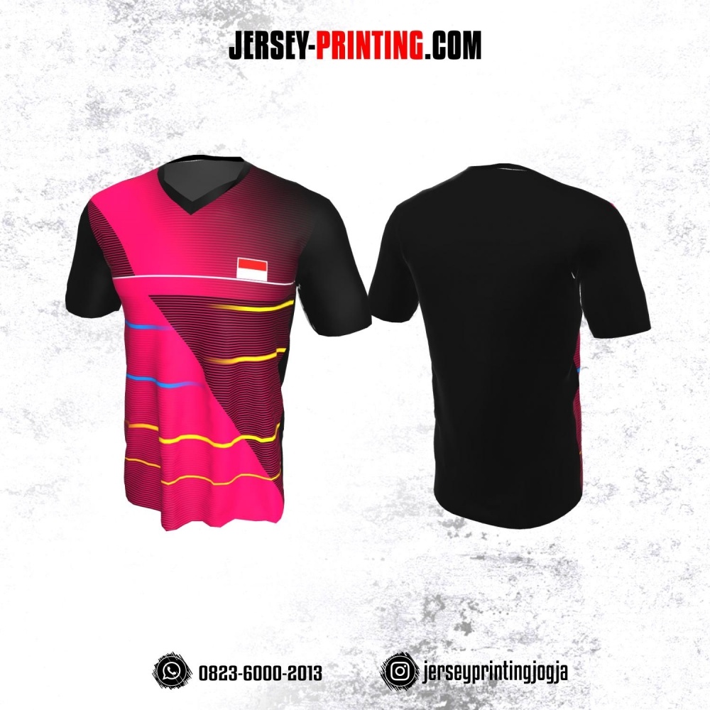 Jersey Badminton Hitam Pink Garis Biru Kuning