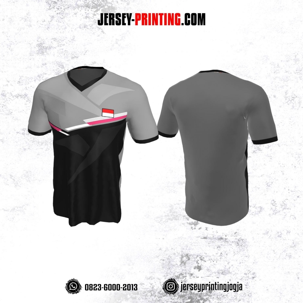 Jersey Badminton Abu Hitam Garis Pink Putih