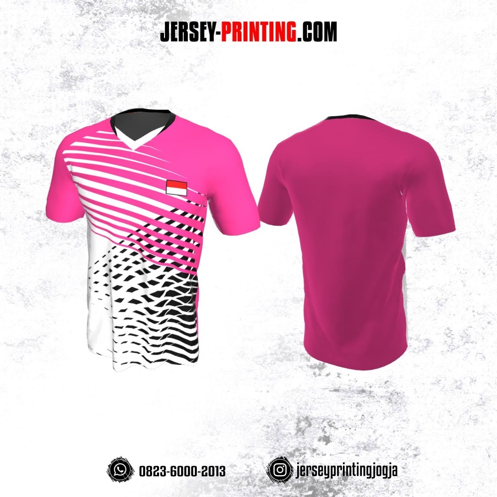 Jersey Badminton Pink Putih Hitam Garis Abstrak
