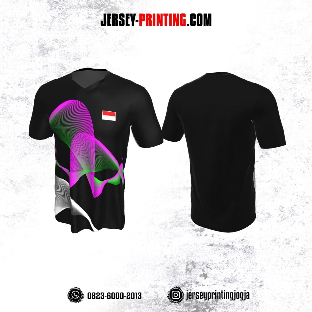 Jersey Badminton Hitam Corak Pink Hijau Putih