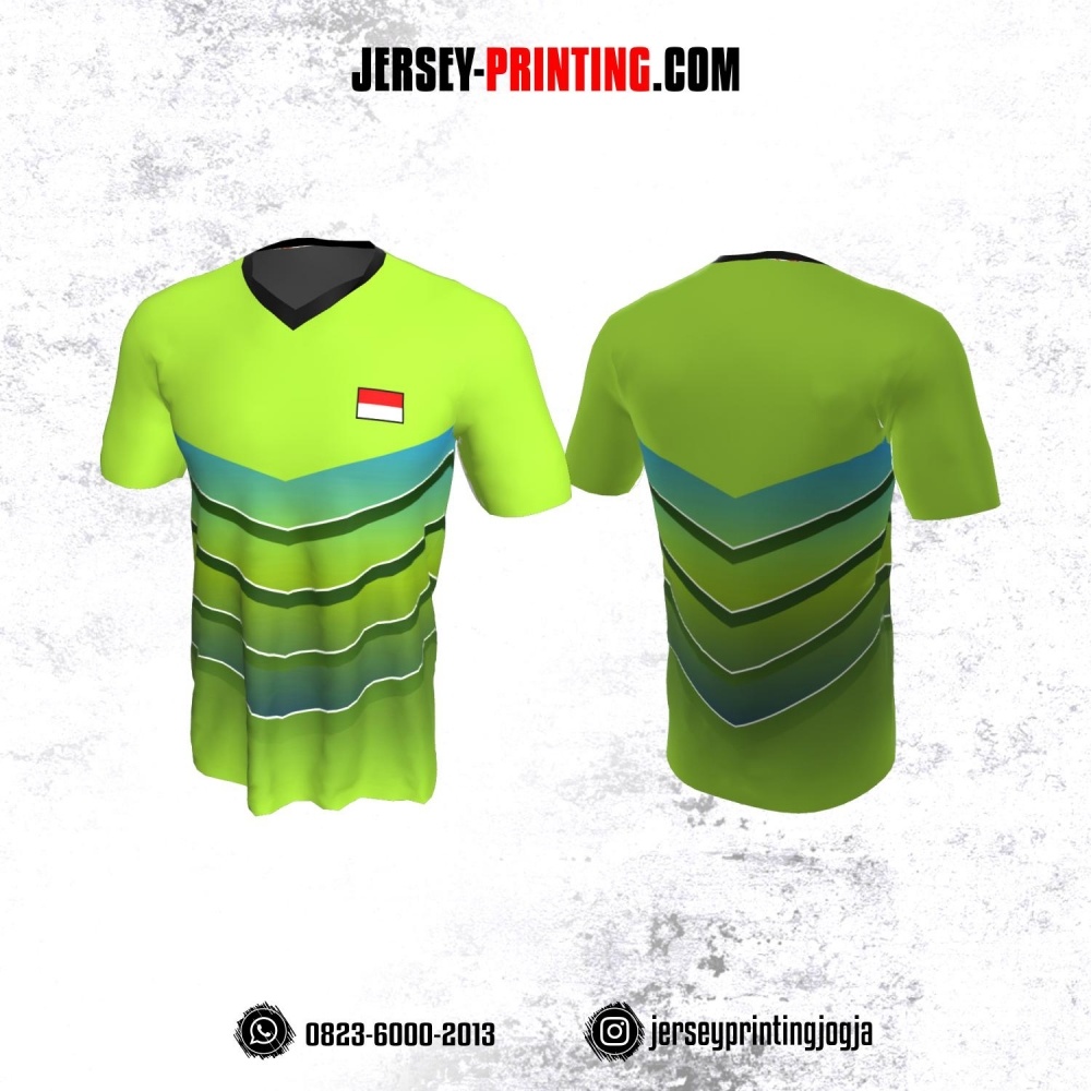 Jersey Badminton Hijau Motif Garis Biru