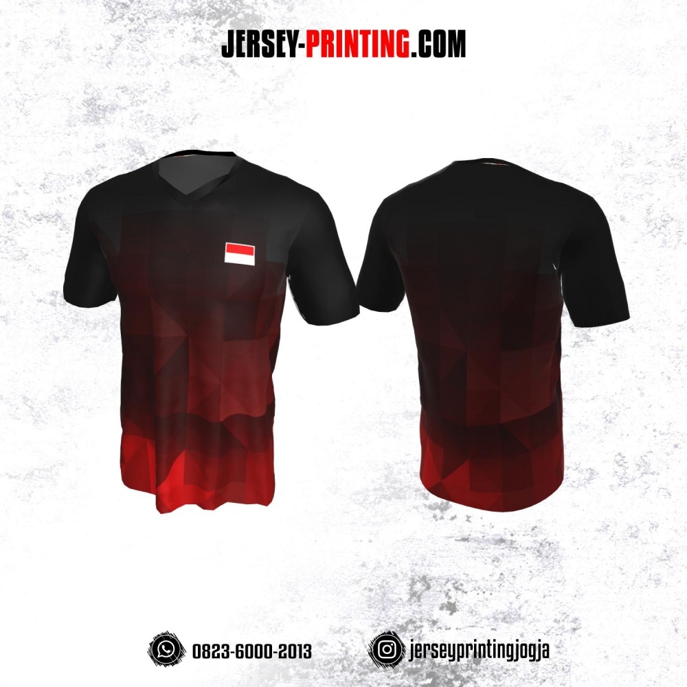Jersey Badminton Hitam Gradasi Merah