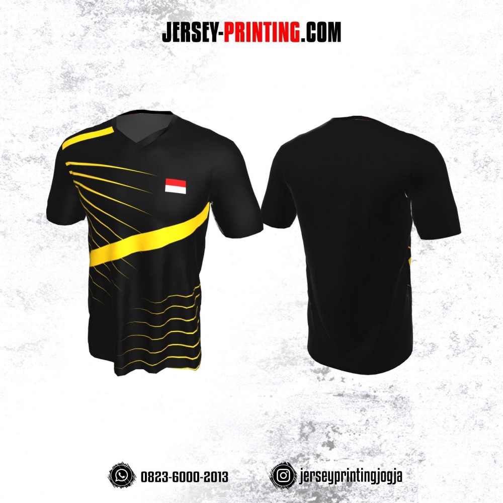 Jersey Badminton Hitam Garis Kuning