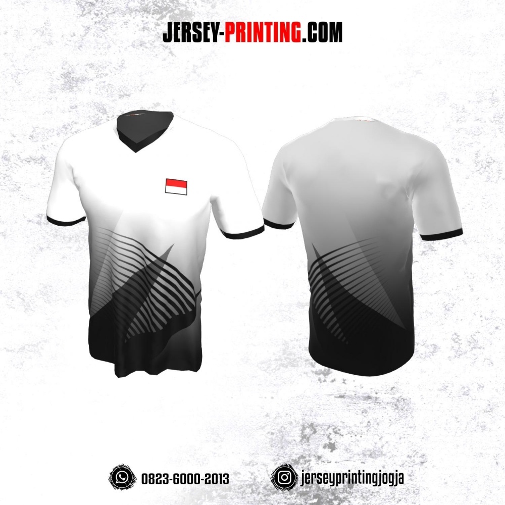 Jersey Badminton Putih Hitam Abu Motif Strip