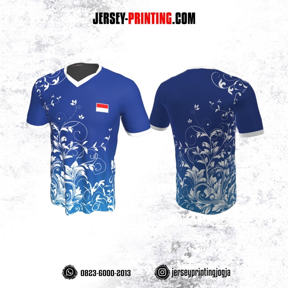 Jersey Badminton Biru Navy Motif Bunga Putih