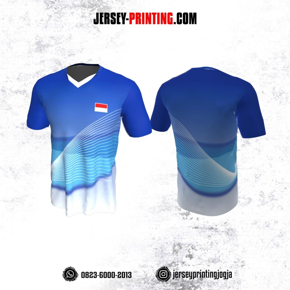 Jersey Badminton Biru Gradasi Motif Strip Putih