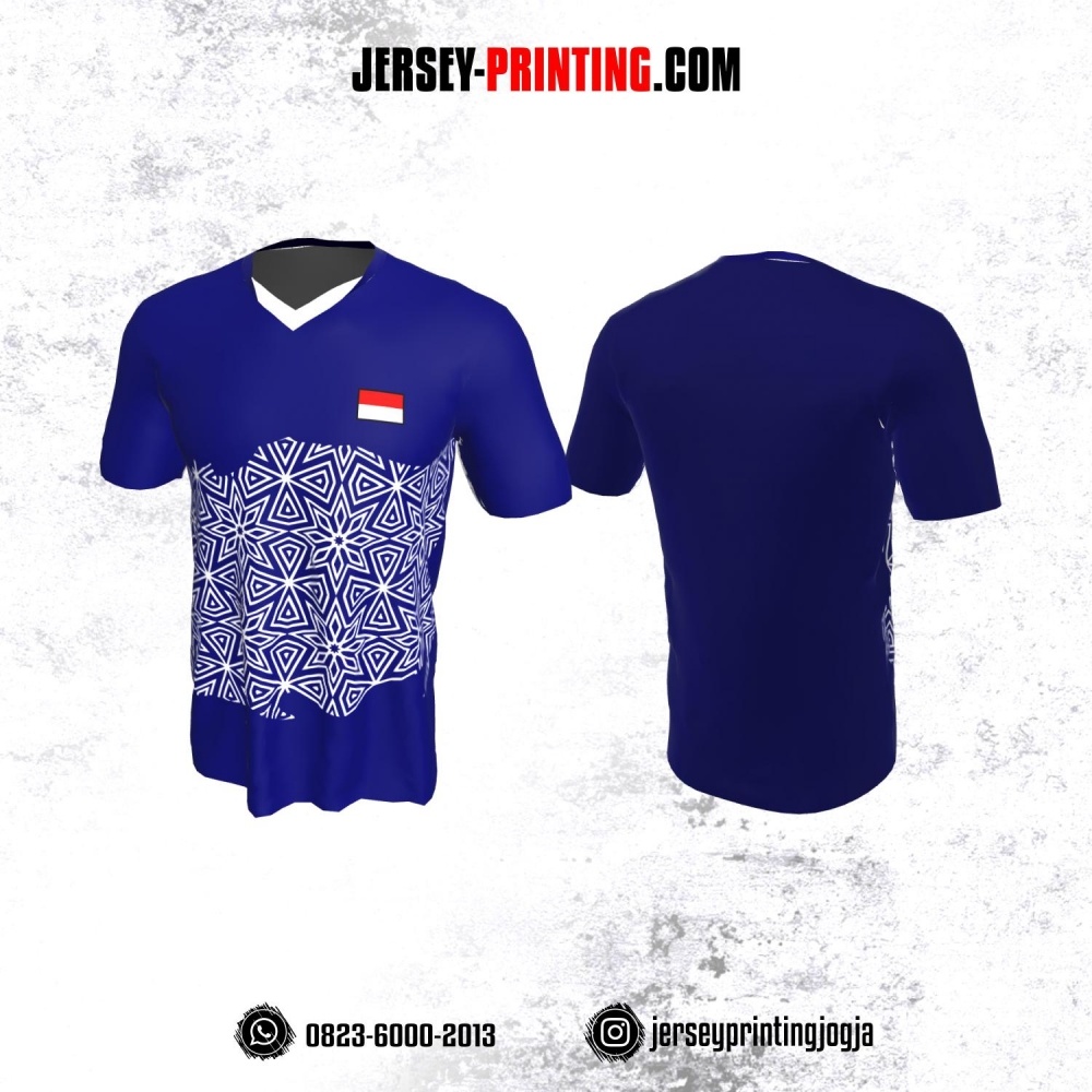 Jersey Badminton Biru Navy Motif Pola Bunga Putih