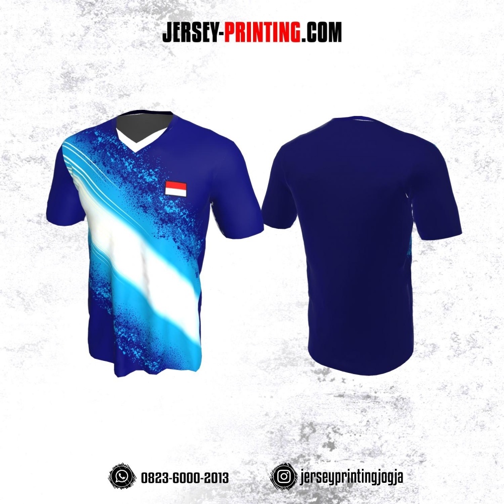 Jersey Badminton Navy Motif Brush Biru Putih