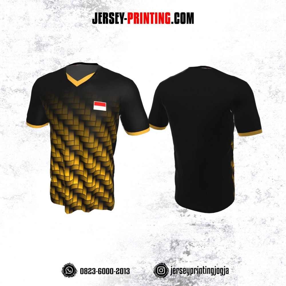 Jersey Badminton Hitam Motif Anyaman Bambu Kuning