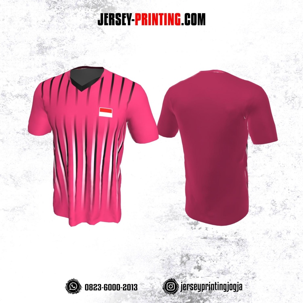 Jersey Badminton Pink Motif Garis Hitam Putih