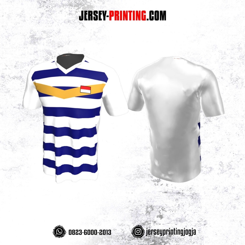 Jersey Badminton Putih Motif Strip Navy Kuning