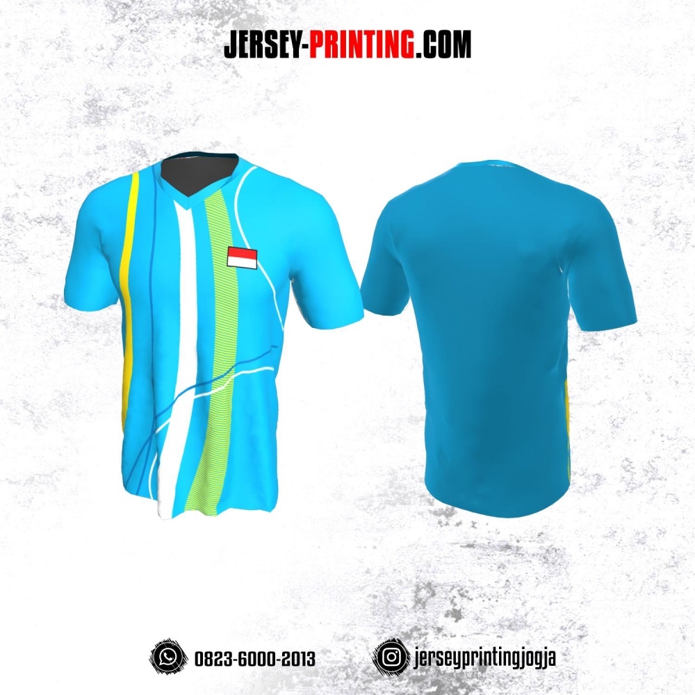 Jersey Badminton Biru Motif Garis Kuning Putih