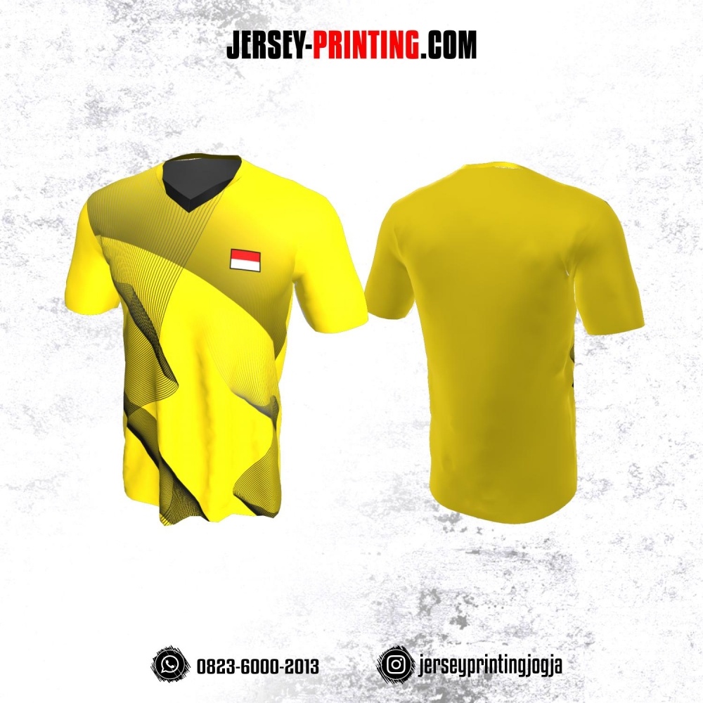 Jersey Badminton Kuning Motif Abstrak Hitam