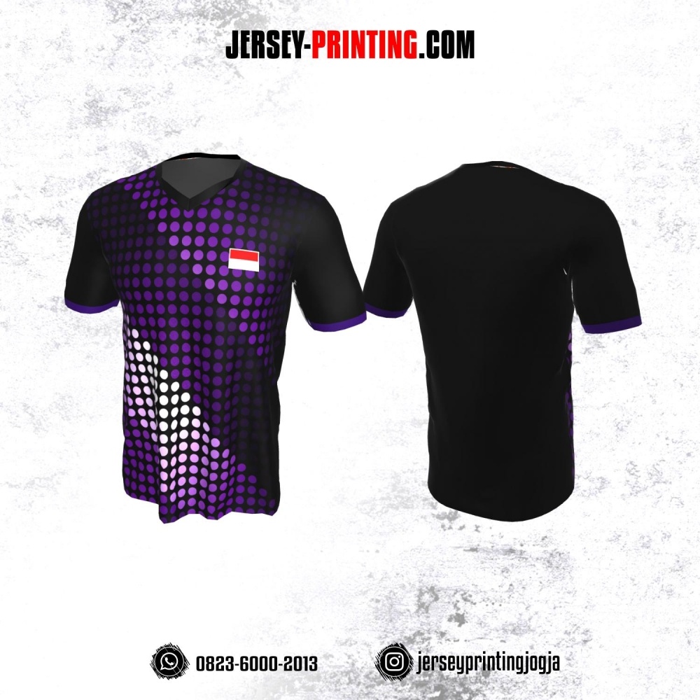 Jersey Badminton Hitam Motif Polkadot Ungu Putih