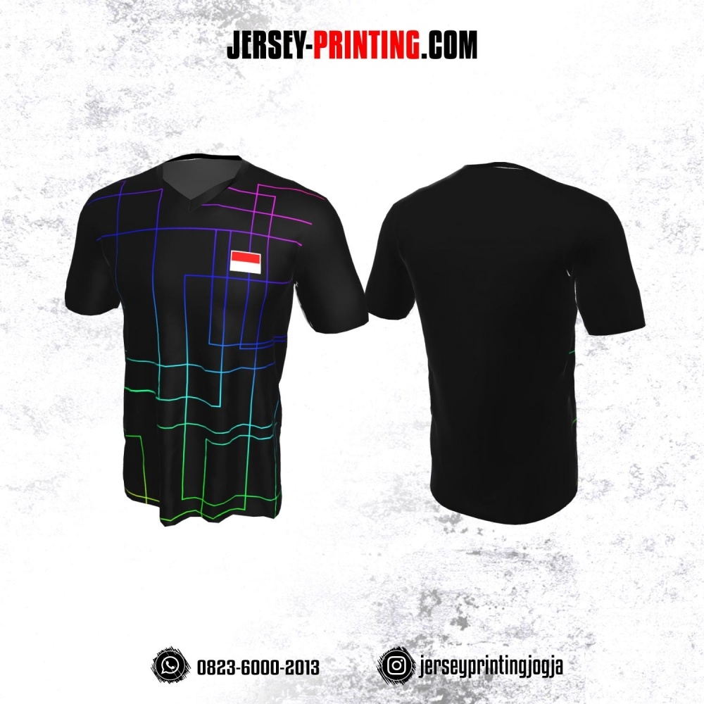 Jersey Badminton Hitam Motif Garis Ungu Biru