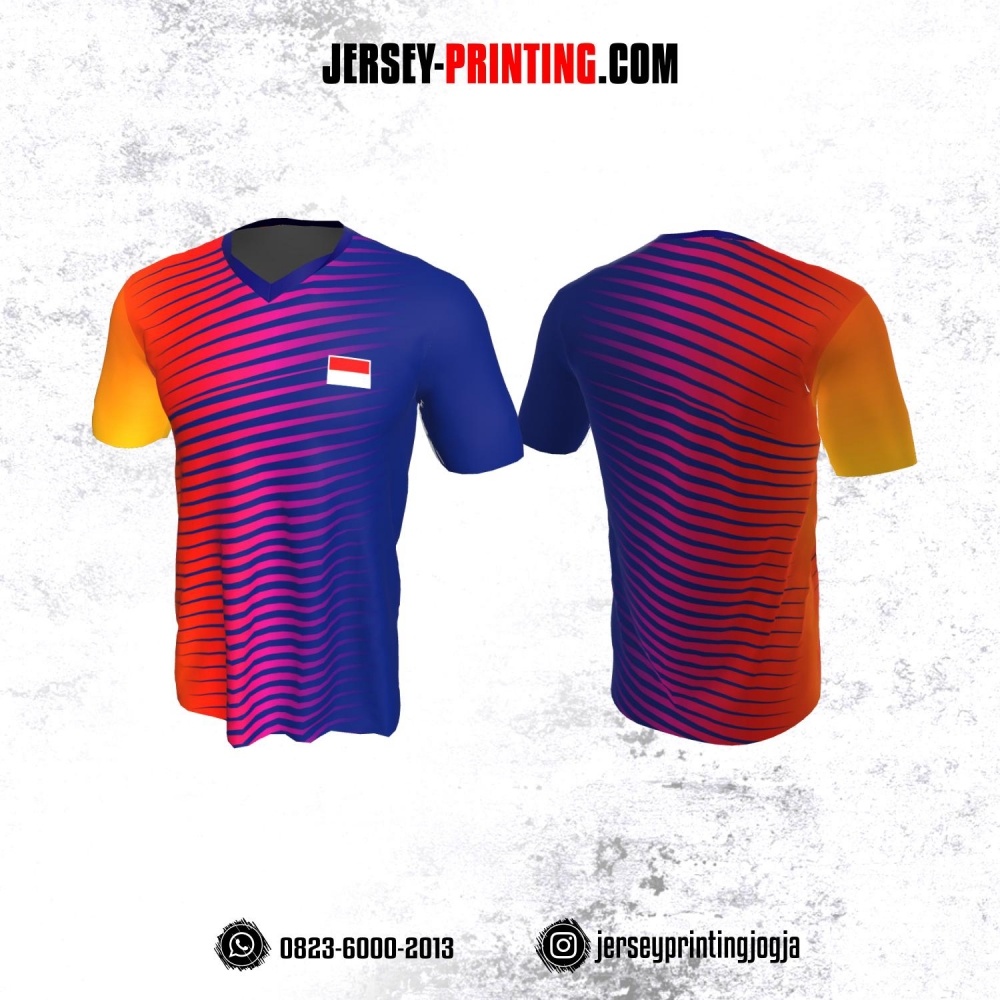 Jersey Badminton Biru Gradasi Pink Merah Kuning Motif Garis