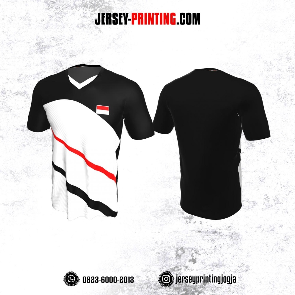 Jersey Badminton Hitam Putih Motif Garis Merah