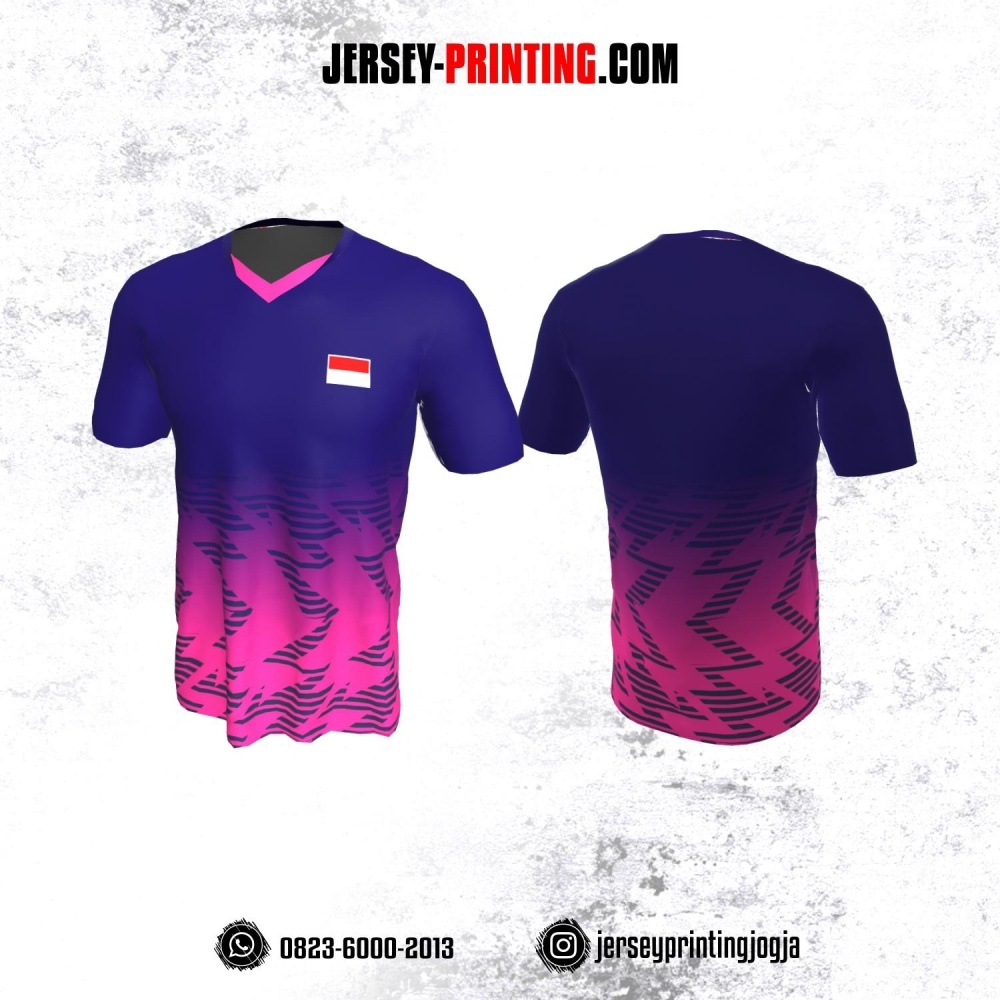 Jersey Badminton Navy Pink Motif Strip