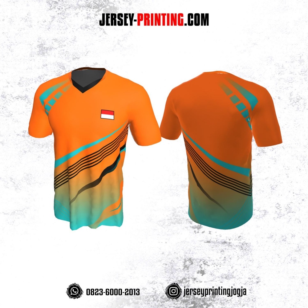 Jersey Badminton Orange Motif Garis Tosca Hitam