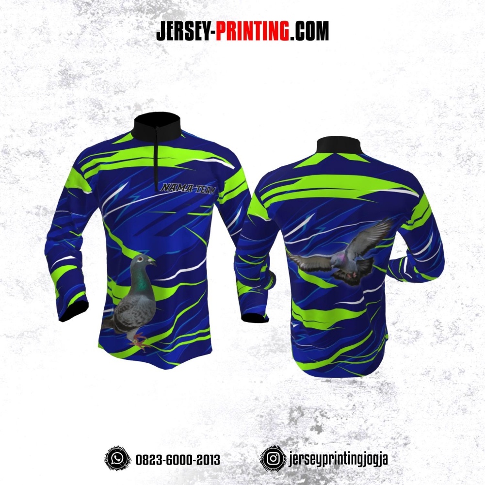 Jersey Merpati Kolong Lengan Panjang Biru Dongker Motif Loreng Hijau