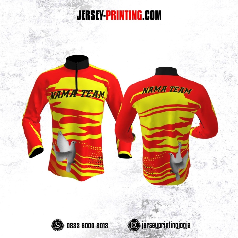 Jersey Merpati Kolong Lengan Panjang Merah Loreng Kuning