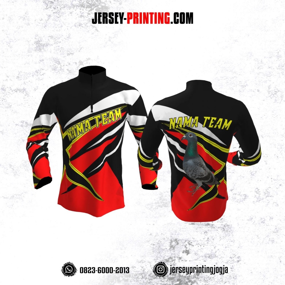 Jersey Merpati Kolong Lengan Panjang Hitam Merah Putih Garis Kuning