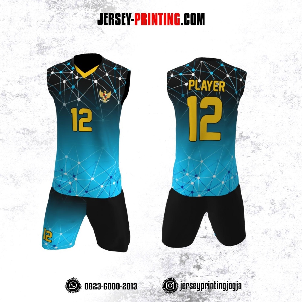 Jersey Baju Volly Tanpa Lengan Biru Hitam Putih Motif Abstrak Line
