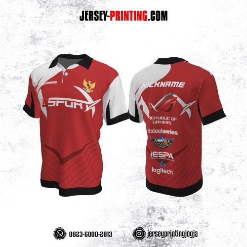 Jersey Gaming Esports Merah Putih Motif Geometris