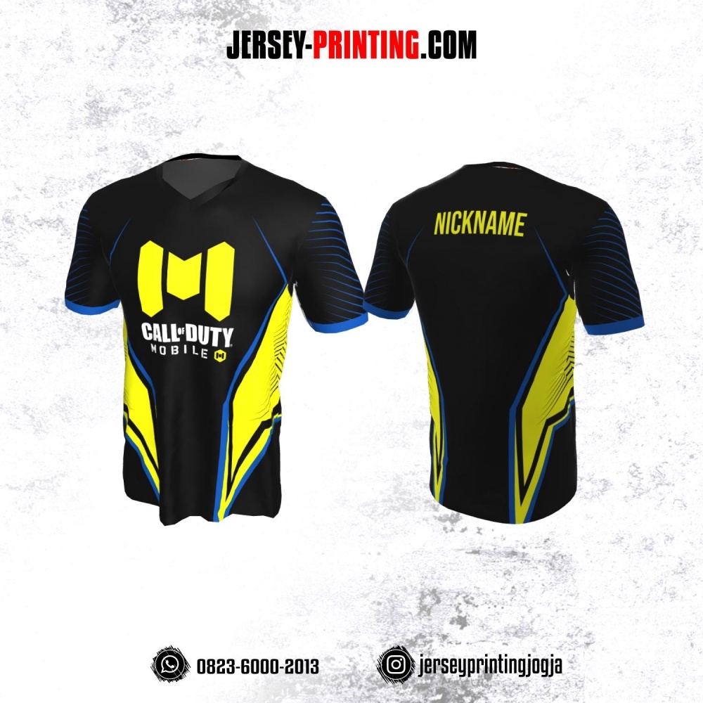 Jersey Gaming Esports Hitam Corak Kuning Line Biru