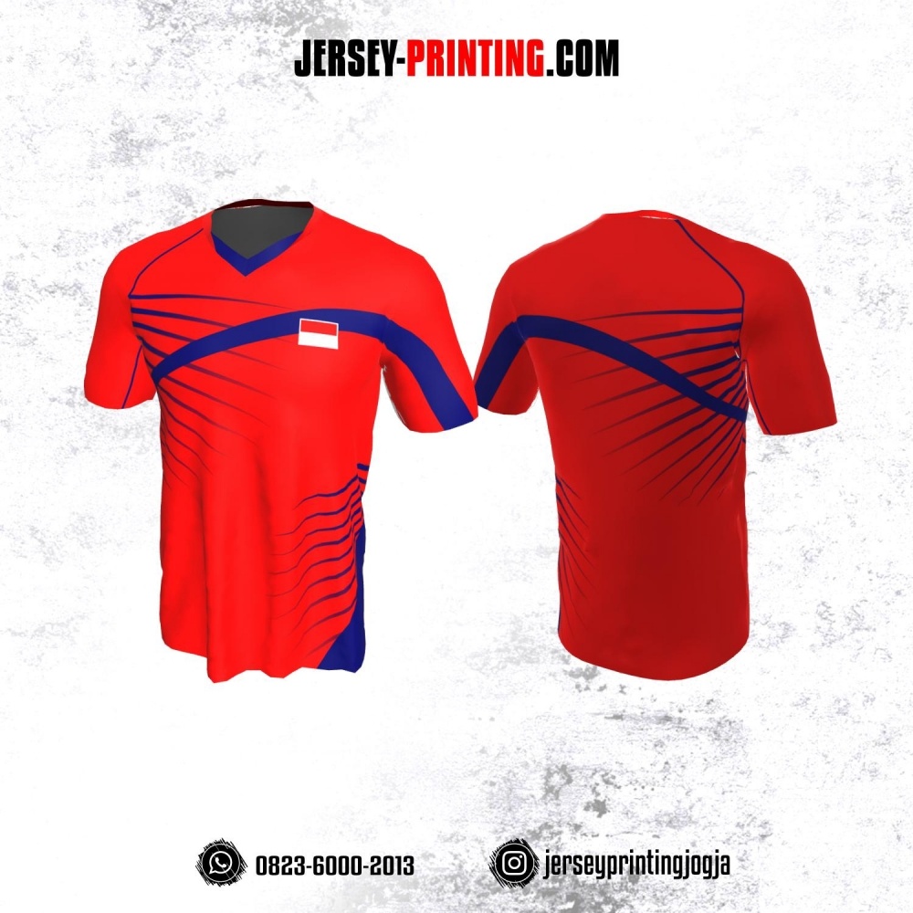 Jersey Badminton Merah Motif Line Navy