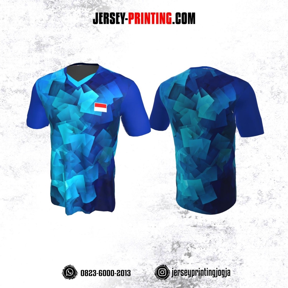 Jersey Badminton Biru Navy Motif Diamond Biru